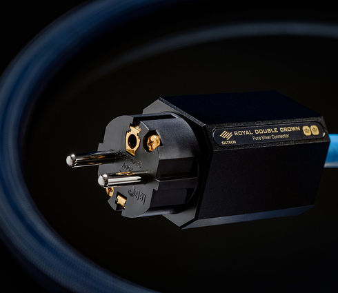 Ostateczny szlif nadają kablom zasilającym Royal Double Crown produkowane samodzielnie przez firmę Siltech wtyki ze stykami ze srebra o dużej czystości.